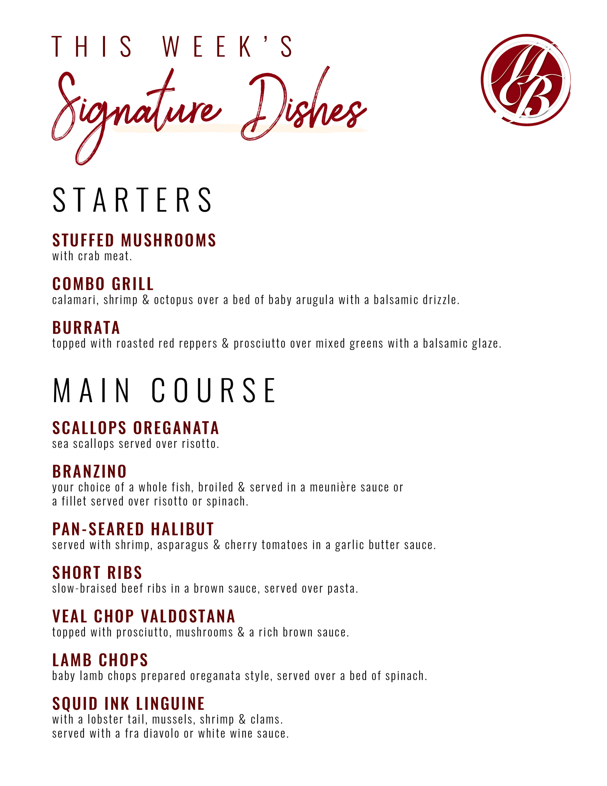 Dinner Menu